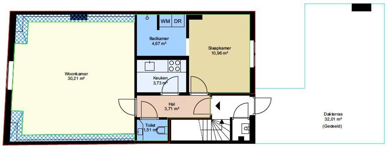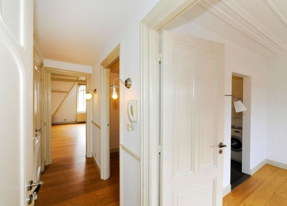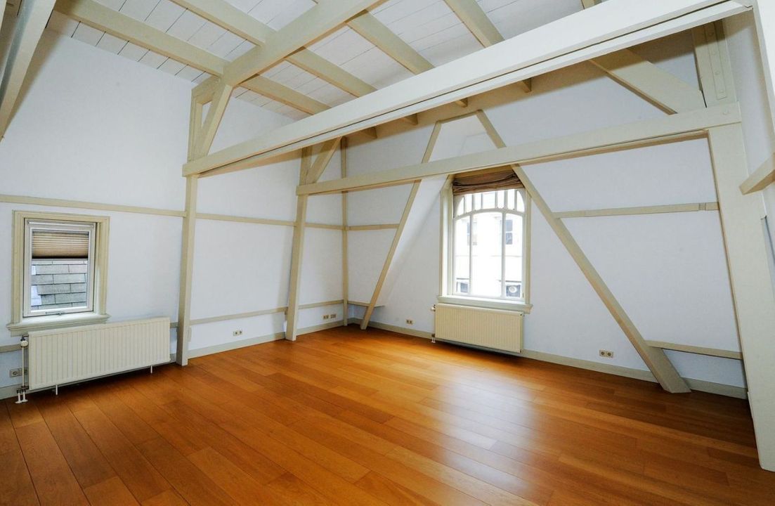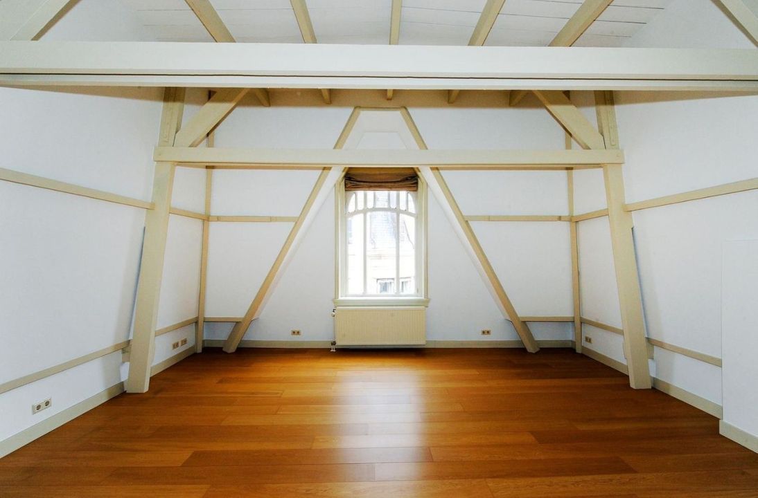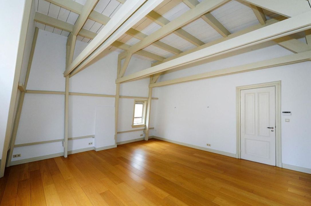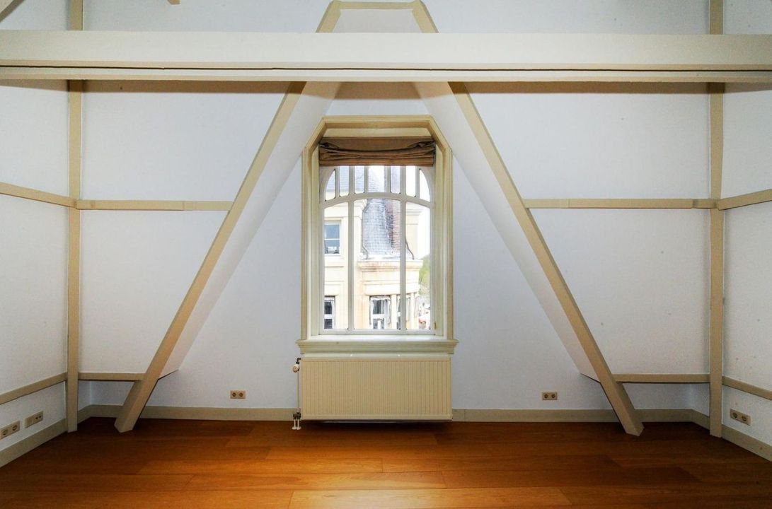 Attractive and spacious two-room top apartment located in THE location of The Hague in the beautiful historic city center. The work palace of the king, the Binnenhof, the Hofvijver, the Palace Garden, not to mention the conviviality and diversity of shops / restaurants in the street or within walking distance. Joint entrance; stairs to the third also top floor, hall with the roof terrace on your right, which you share with the resident of the second floor. On the left is the entrance to the apartment, hall which gives access to all rooms, toilet, beautiful spacious living room with a high ceiling and beautiful view over the terraces of the Place. The bedroom located at the rear gives access to the bathroom with shower with rain shower, washbasin and a washing machine / dryer. The kitchen is located between the living room and bedroom and is equipped with various built-in appliances. The entire apartment has a light laminate floor and all walls have been painted. Make an appointment quickly to take a look at this nice city apartment.