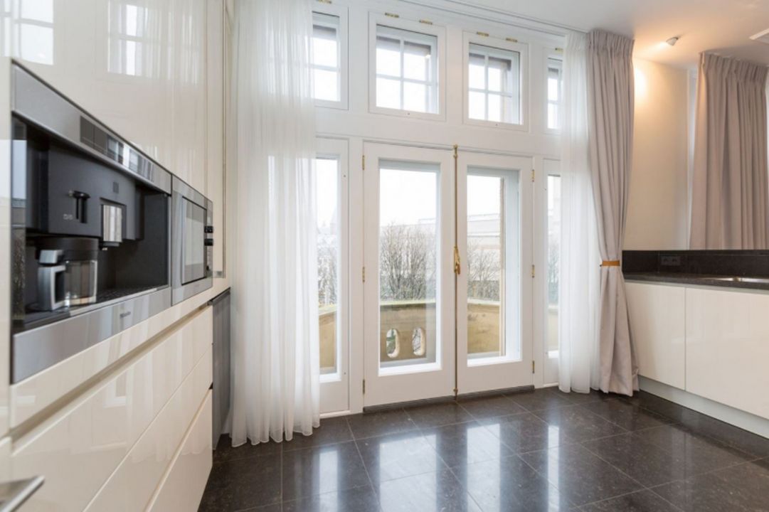 RESIDENCE D’OOIEVAAR HOFWEG 27 DEN HAAG OP EEN VAN DE MEEST MARKANTE LOCATIES VAN DEN HAAG LIGT RESIDENTIE D’OOIEVAAR. DIT HISTORISCHE GEBOUW DATEERT UIT 1902 EN IS IN 2010 GEHEEL GERENOVEERD EN VERBOUWD TOT VIER APPARTEMENTEN. DAARBIJ IS DE KARAKTERISTIEKE GEVEL GEHEEL IN TACT GEBLEVEN, INCLUSIEF DE OOIEVAAR DIE ALS SYMBOOL VOOR DE STAD DEN HAAG UITKIJKT OVER DE OMGEVING. DE KENMERKENDE STRIJKIJZER-VORM GEEFT HET GEBOUW EEN KRACHTIGE UITSTRALING EN ZORGT BINNEN VOOR EEN VERRASSEND ORIGINELE INDELING. ALLE APPARTEMENTEN BIEDEN UITZICHT OP HET BINNENHOF EN DE HOFPLAATS. VANUIT DE WOONKAMER BIEDEN DE HOGE RAAMPARTIJEN EEN ADEMBENEMEND UITZICHT OP DE LANGE POTEN EN DE MARKANTE GEBOUWEN DIE KENMERKEND ZIJN VOOR DIT (AUTOLUWE) DEEL VAN DE STAD. De vier luxe appartementen zijn met de grootste zorg gerenoveerd en voorzien van alle denkbare luxe die u in deze prijscategorie mag verwachten. Er is op uitgebreide schaal Domotica toegepast om de veiligheid van de bewoners te kunnen waarborgen. Het is deze extra aandacht voor veiligheid in combinatie met de bijzondere ligging, die dit appartement bijzonder geschikt maakt voor diplomaten of mensen die anderszins belang hebben bij een hoog veiligheidsniveau. Tevens zijn alle appartementen uitstekend geschikt als kantoor of de combinatie wonen/werken. Indeling: Beveiligde entree op straatniveau. Hal met marmeren vloer en statig trappenhuis of lift naar 2e etage. Entree tot de woning met extra beveiligde voordeur voorzien van cameratoezicht. Entreehal met visgraat parketvloer, aparte afvalberging, luxe toilet voorzien van fontein en afgewerkt in marmer. Dubbele openslaande deuren naar woongedeelte, inpandige serre met openslaande deuren naar buitenterras. Luxe keuken o.a. uitgerust met wijnklimaatkast, koffiezetapparaat, oven, magnetron, koel/vriescombinatie en inductie kookplaat (5 kookgebieden). Woonkamer (ca 85 m2) half rond met prachtige raampartijen rondom uitgevoerd met voorzetramen aan de buitenzijde en openslaande ramen aan de binnenzijde met veiligheidssloten. Via een overloop, eveneens voorzien van monitor met vier camerabeelden, toegang tot eerste slaapkamer met inloopkast. Tweede slaapkamer. Luxe badkamer uitgevoerd met groot ligbad, dubbele wastafel en luxe douche met ingebouwd verticaal solarium. Separate kamer voor wasmachine en droger. Bijzonderheden: - gehele appartement is voorzien van een visgraat parketvloer (m.u.v. de keuken en badkamer) - brandmeldsysteem met meldkamer aansluiting alsmede een alarminstallatie met cameratoezicht - uniek object op prachtige locatie op steenworpafstand van regeringsgebouwen - dit appartement is een absolute aanrader - woning is ideaal voor woon- werkruimte. - parkeerplaats in beveiligde parkeergarage bij Novotel is optioneel Details: - huur is exclusief gas, water, elektra, TV en internet - borg is 1 maand huur - short stay contract van toepassing - kosten parkeerplaats € 125,- per maand Benodigdheden: Wanneer u bij of via ons een woning huurt is het verplicht dat bij een overeenstemming een aantal gegevens door de huurder wordt overhandigd om daarbij de huurovereenkomst te kunnen opstellen. Deze gegevens bestaan tenminste uit: - Kopie paspoort huurder en bewoners - Kopie arbeidsovereenkomst of werkgeversverklaring - Inkomensgegevens van de laatste 3 maanden Indien de overeenkomst door de werkgever wordt aangegaan: - Uittreksel Kamer van Koophandel (niet ouder dan 6 maanden) - Kopie paspoort van de tekeningsbevoegde namens de onderneming - Kopie paspoort werknemer