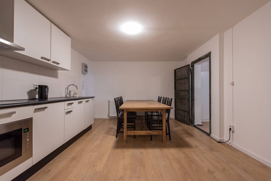 De studio is gelegen op de begane grond aan de achterzijde van het pand. Het heeft een mooie lounge en eetkamer met een open keuken. De badkamer is voorzien van een douche, wastafel en apart toilet. De ruimte geeft expats en studenten de mogelijkheid om extra tijd door te brengen met vrienden en familie. De gemeenschappelijke was- en droogruimte bevindt zich op de eerste verdieping.