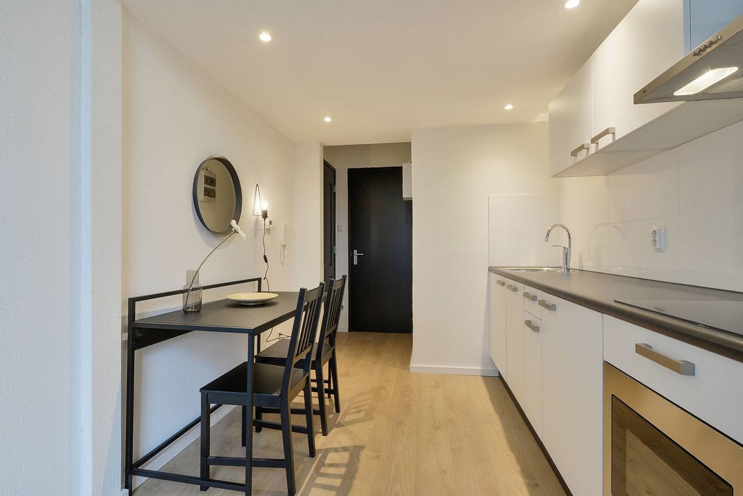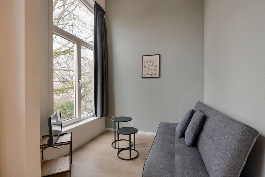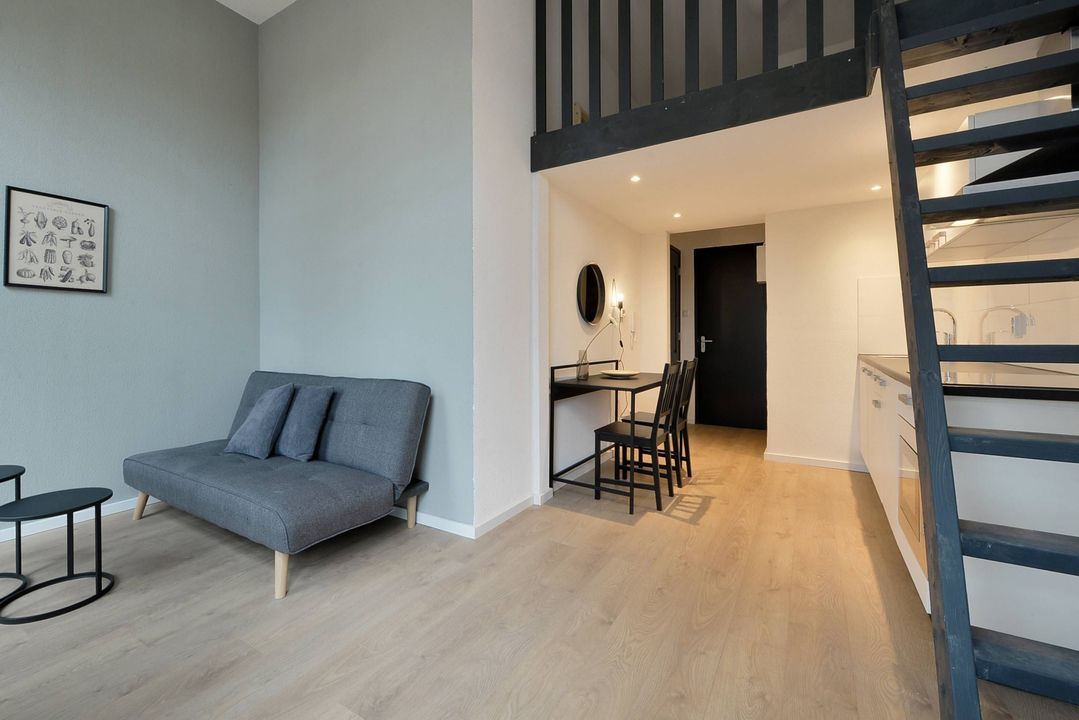 De studio is gelegen op de tweede etage aan de achterzijde van het pand. Het heeft een mooie lounge en eetkamer met een open keuken en entresol. De badkamer is voorzien van een douche, wastafel en apart toilet. De comfortabele slaapbank geeft expats en studenten de mogelijkheid om extra tijd door te brengen met vrienden en familie. De gemeenschappelijke was- en droogruimte bevindt zich op de eerste verdieping.